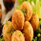 Bolinha de arroz recheado empanado e frito